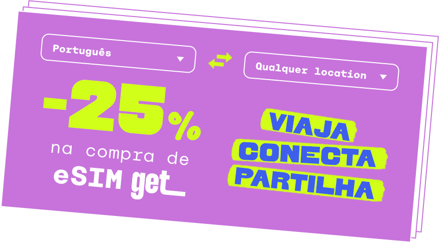 Cada código corresponde a uma oferta de 20% de desconto na compra de um eSIM internacional, válido na app e site get, para qualquer destino abrangido. A oferta é exclusivamente acessível aos clientes WTF até 31 de janeiro de 2026.